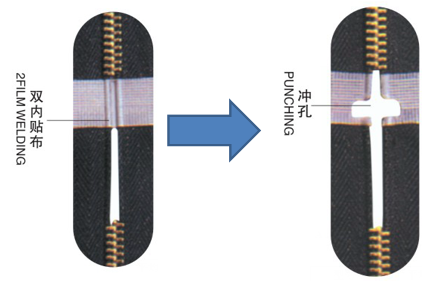 - 更換模具及少量配件即可同機完成尼龍、金屬、樹脂拉鏈等沖孔工藝。