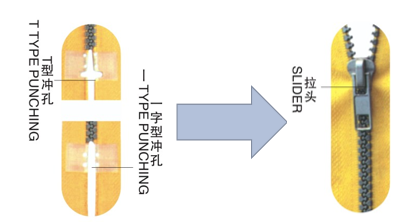 • 特殊定位設計,有無下止均可靈活定位,保證無下止穿頭后鏈牙整齊閉合。